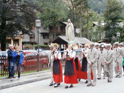 Gressoney-La-Trinité: tradizionale processione della Santissima Madonna lungo le vie del paese di Gressoney-La-Trinité.