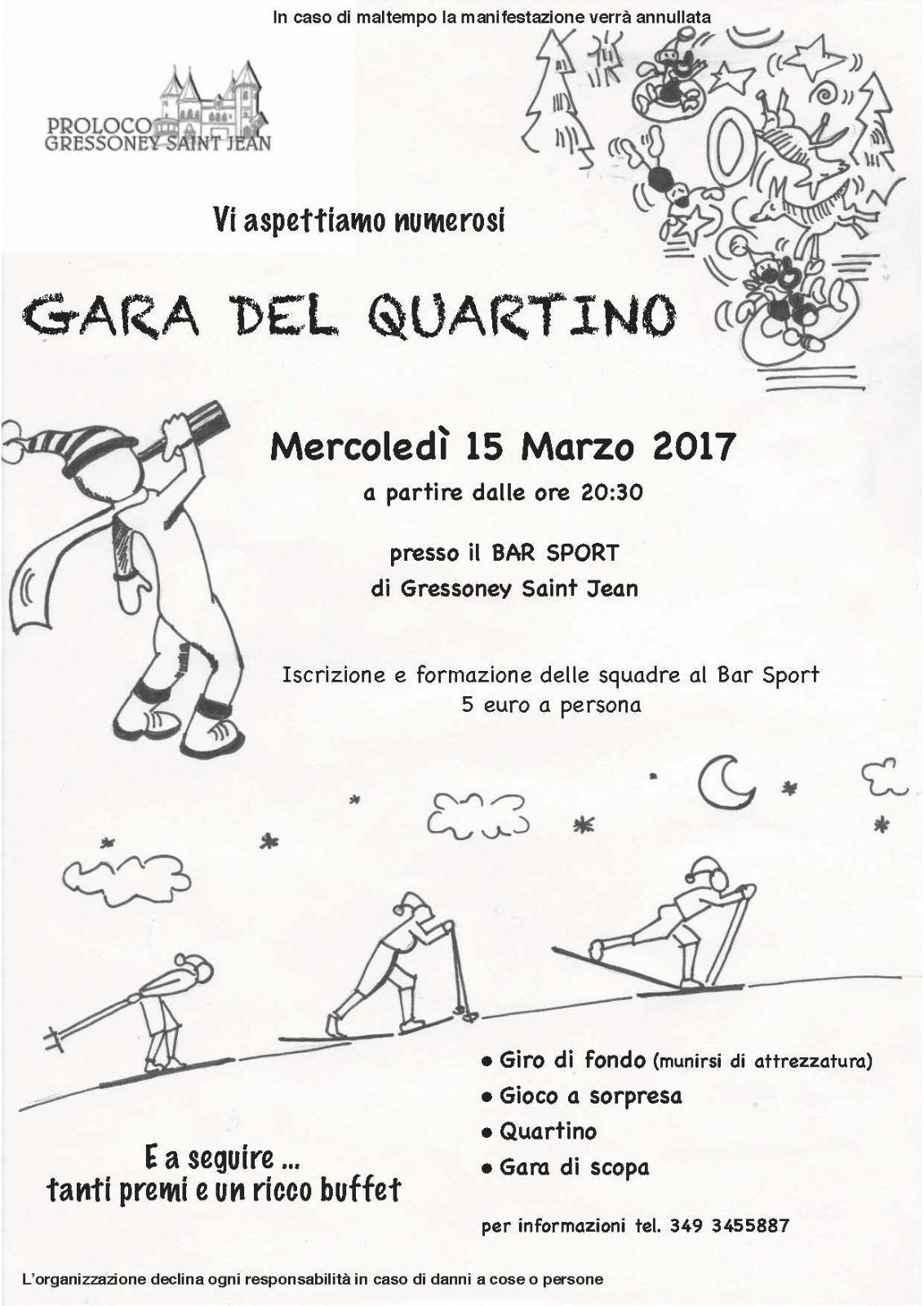 Gara del quartino - esilarante gara a squadre promossa dalla Proloco Gressoney Saint Jean. Iscrizioni squadre presso Bar Sport Loc Tschoarde.
