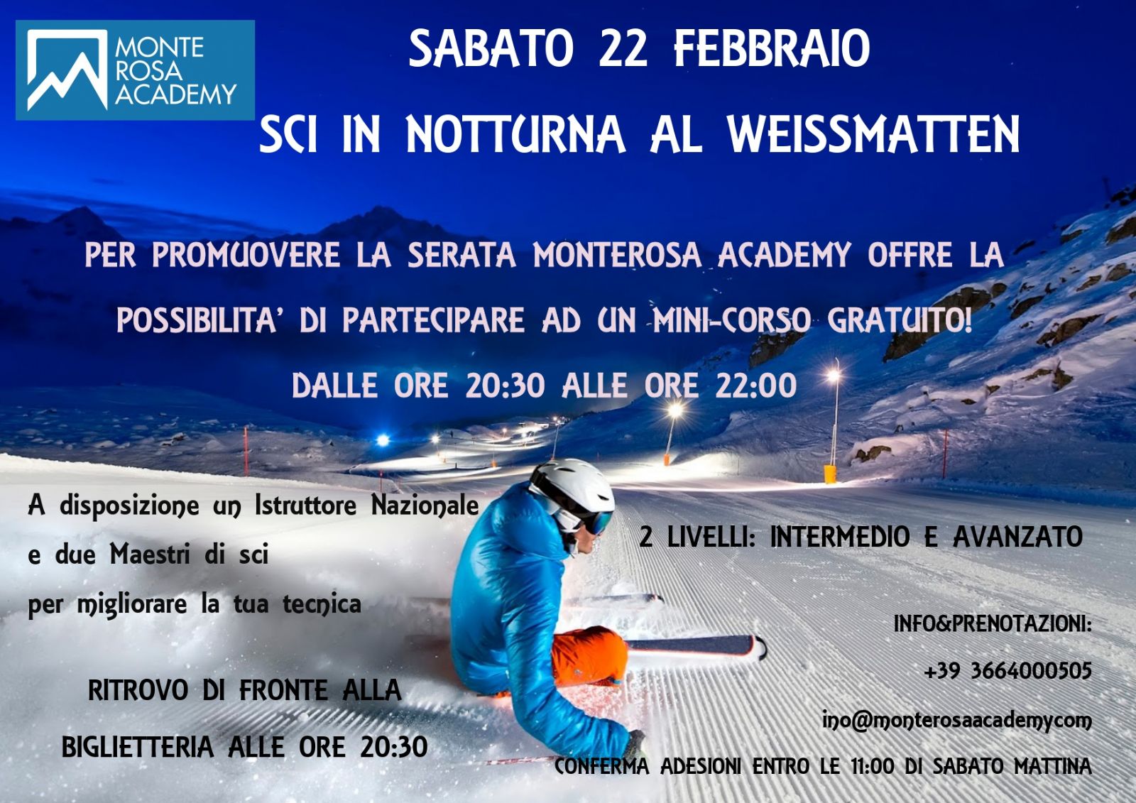 Per promuovere la serata di Apertura del Weissmatten in notturna la Monterosa Academy offre la possibilità di partecipare ad un mini corso gratuito dalle ore 20.30 alle ore 22.00.
