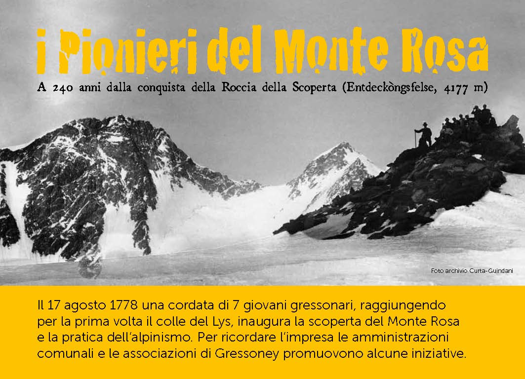 Conferenza sulla prima esplorazione del Monte Rosa ed epopea storica, dalle ore 21 a Wohnplatz, Gressoney Saint Jean.