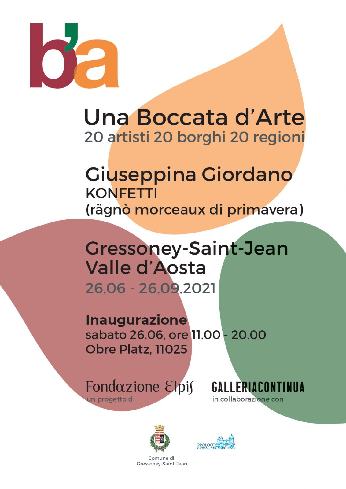 Gressoney-Saint-Jean è il borgo che ospiterà la mostra KONFETTI (rägnò morceaux di primavera), in italiano CORIANDOLI (piovono frammenti di primavera) dell’artista Giuseppina Giordano.