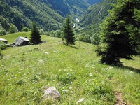 Da Zer Trino imboccare il sentiero (segna via n. 1 ) che, in corrispondenza della chiesetta, si inoltra nel bosco salendo a svolte fino a immettersi in un altro sentiero proveniente da Nord. Svoltare a sinistra e proseguire lungo tale sentiero, a tratti lastricato, che sale in diagonale nel bosco, passando a fianco dell'alpeggio di Zer Tanno, fino a raggiungere la località Ronc (1441 m). Da questo abitato il sentiero sale ripido in direzione E nel bosco che ricopre il versante sinistro orografico del Vallone di Forca. Quando il bosco si dirada e la pendenza diminuisce si attraversano alcuni accumuli detritici (prestare attenzione alla possibile caduta di pietre), dopodichè la traccia piega decisamente a sinistra raggiungendo l'alpeggio di Forca (1837 m) che si trova in corrispondenza della soglia glaciale che separa la parte inferiore del vallone, stretta e ripida, da quella superiore, più ampia e dalla pendenza più dolce. Il sentiero prosegue tra prati e accumuli detritici passando dall'alpeggio diroccato di Henniciuken (2000 m) fino a raggiungere il ripido pendio erboso sottostante il colle che si risale con alcune svolte. Tempo complessivo di salita 2h30' - 3h.