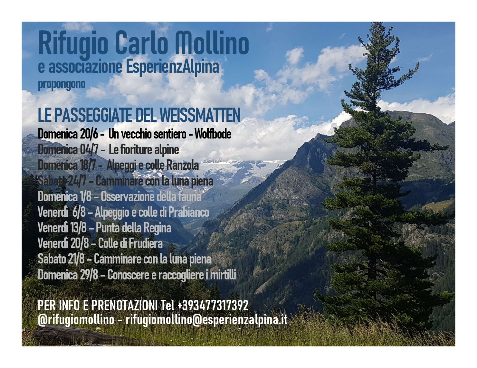 Il Rifugio Carlo Mollino - Casa Capriata di Weissmatten in collaborazione con l'Associazione Esperienza Alpina organizza alcune passeggiate accompagnate da Guida della Natura per i sentieri del Weissmatten.
