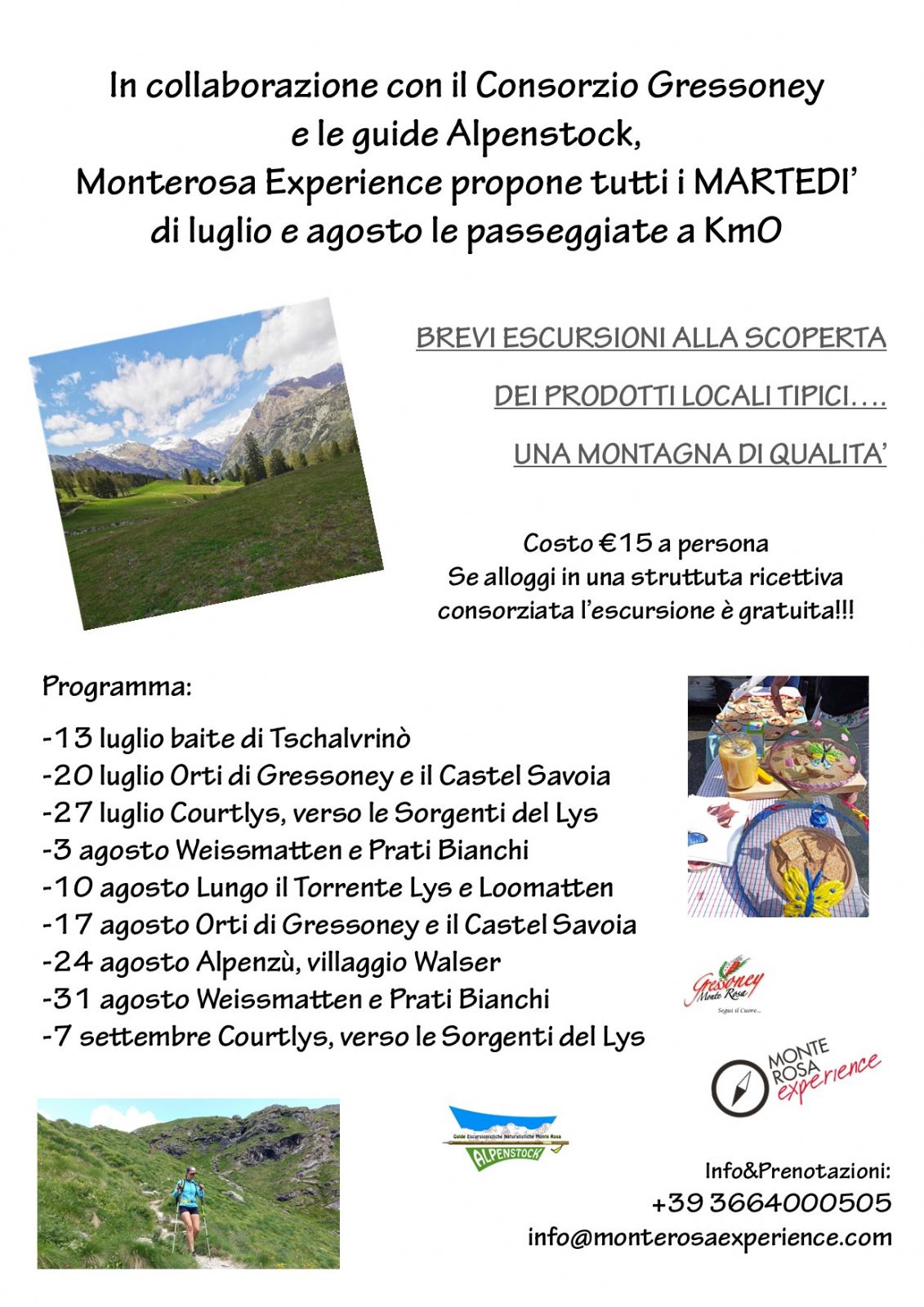 Il Consorzio Turistico Gressoney Monterosa in collaborazione con Monterosa Experience e l Guide Escursionistiche Alpenstock propongono tutti i martedì una passeggiata accompagnata alla scoperta dei prodotti locali, con degustazioni di miele o formaggi e visite agli orti di montagna
