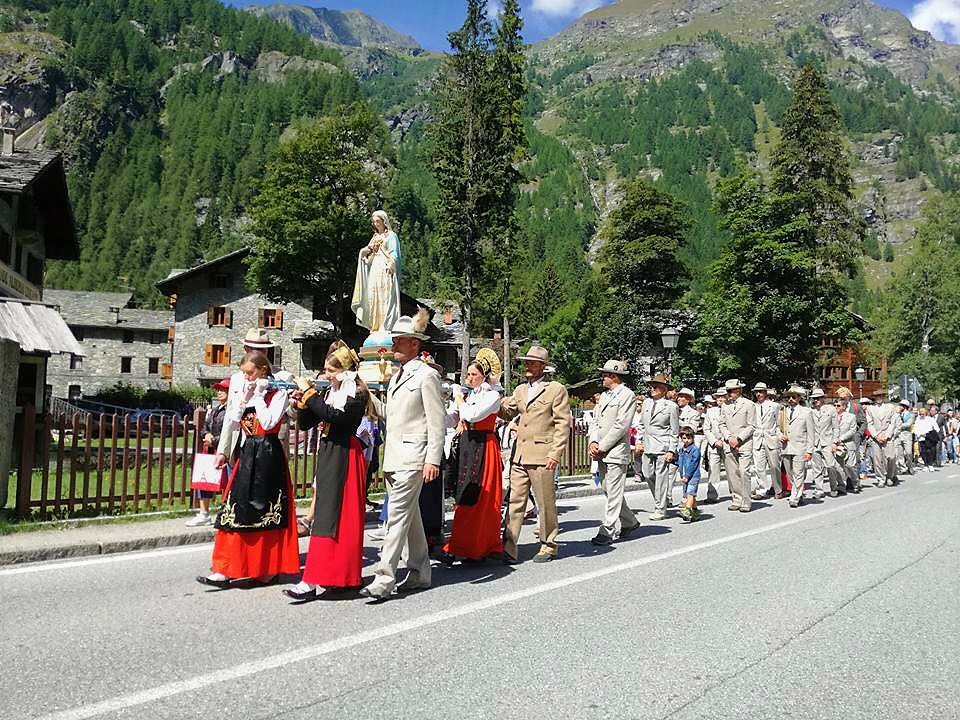 Tradizionale processione in costume tradizionale dell'Assunta, per le vie di Gressoney Saint Jean, dopo la Santa Messa delle ore 10.30.