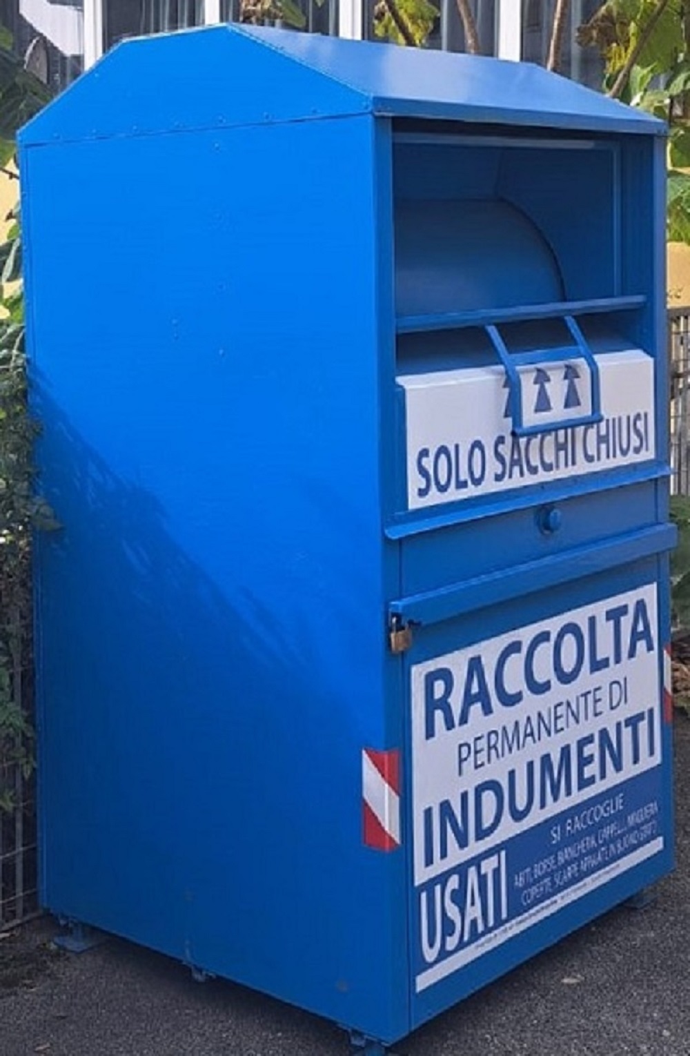 Cosa non gettare: tessuti con macchie di grasso o vernici o contaminati da muffe (inclusi abbigliamento e accessori), valigie di grandi dimensioni, scatole e qualsiasi contenitore che non entri all’interno dei cassonetti blu, materassi, pannoloni, altri oggetti non assimilabili al rifiuto tessile.